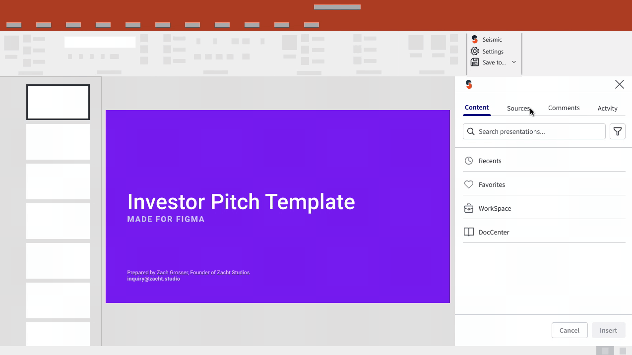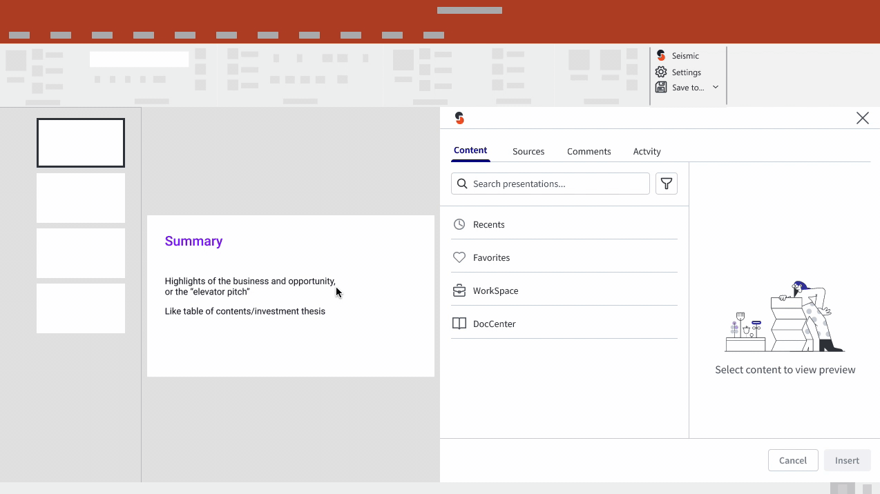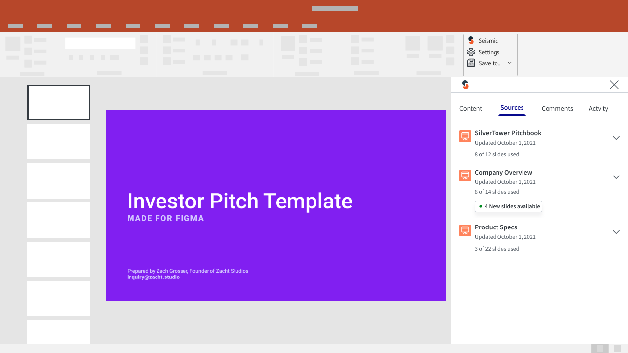 Integrating Seismic into Microsoft PowerPoint, empowering sellers to efficiently create presentations.